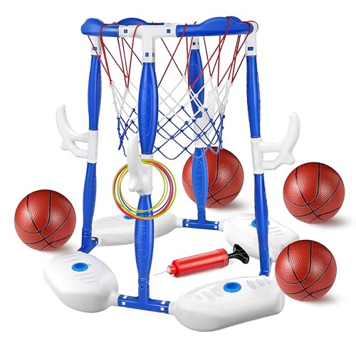 Pool Basketball Hoop Toys, Swimming Floating Basketball Hoop Pool Game with 4 Basketballs, Swimming Floats Toys with Balls Pump, Summer Outdoor Pool Water Play Toy for Kids and Adults (Blue)