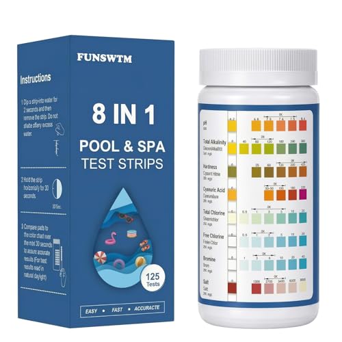 9-in-1 Pool & Hot Tub Test Strips 鈥 125 Salt Pool Test Strips | Fast & Accurate Water Testing for pH,Total Alkalinity,Total Hardness,Cyanuric Acid,Salt,Total Chlorine,Free Chlorine,Bromine,Copper