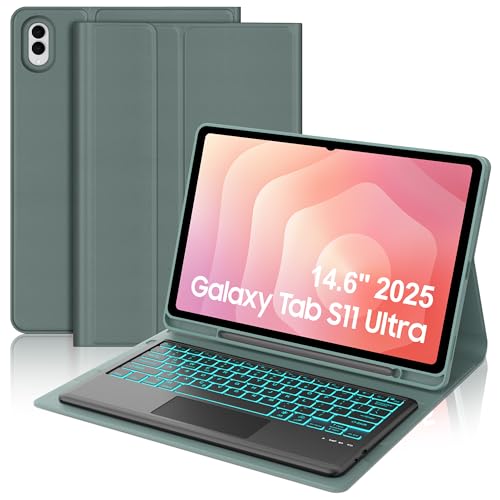 Keyboard Case for Samsung Galaxy Tab A11+ Plus / A9+ Plus 11 Inch, Mouse and 7 Colors Backlit Detachable Keyboard, Adjustable Stand Built in S Pen Holder, Auto-Sleep/Wake Feature, Black