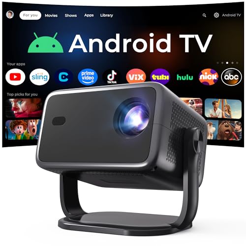 [Native 1080P FHD/AI Visual Calibration] Smart Projector with Dolby Audio, 600 ANSI 4K Support, AI Auto Focus&Keystone, Android TV OS 10,000+Apps, Mini Portable Projector with WiFi 6 and Bluetooth 5.4