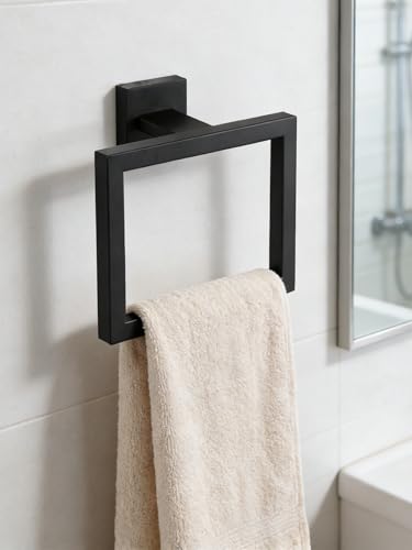 RUACQ Towel Ring for Bathroom,Square Base Hand Towel Holder Hangers Wall Mount,Heavy Duty,Stainless Steel(Chrome)