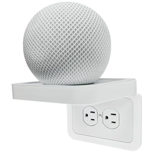 Power Perch Outlet Shelf with Cord Storage Strap 鈥 Small Wall Shelving for Alexa Stand, Echo Holder, Router Shelf 鈥 Bedroom & Bathroom Organizer (White, 1-Pack)