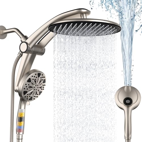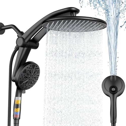 BESy Shower System with 12 Inch Rain Shower Head and Handheld Wall Mounted, High Pressure Rainfall Shower Faucet Fixture Combo Set with 2 in 1 Handheld Showerhead for Bathroom, Matte Black