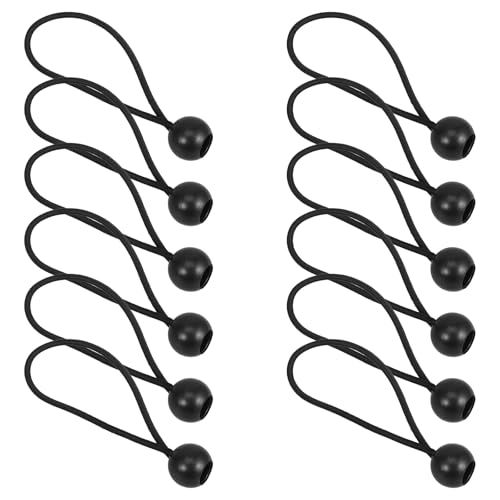 TECDW 20PCS Bungee Cord with Balls, 4 Inch Heavy Duty Elastic Ties with Balls, Polyester and Natural Latex Bungee Strap Ties for Camping Tents, Tarpaulin, Flag & Marquee (Black)