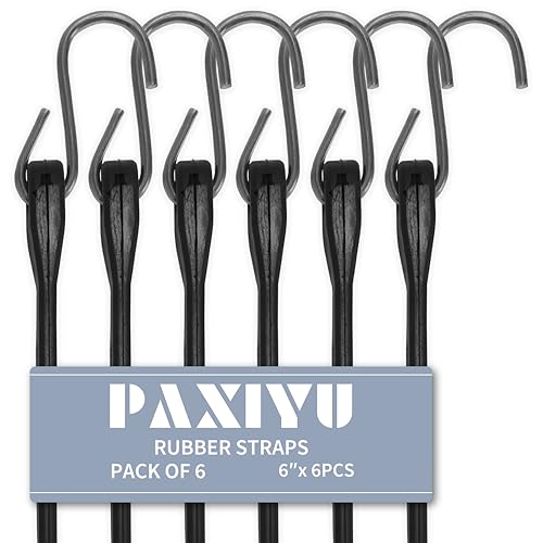 Heavy Duty Bungee Cords with S Hooks - 6 Inch Rubber Tie Down Straps for Truck, Van, Motorcycle, Cargo, Tarps, Canvases and More (6 Pack)
