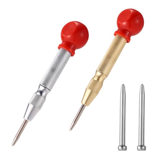 Nice Processed Automatic Center Punch Hardened Steel Removable Tip Positioner Adjustable Force Center Hole Punch Tool,1Pcs(Red)