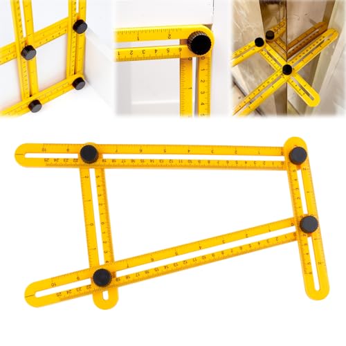 Fonture Multi-Functional Folding Ruler 4 Sides Ruler Aluminum Alloy Measuring Ruler Multi Angle Template Tool Black (4 Sides)