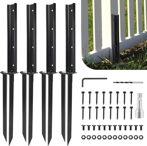 IMALEN Fence Post Repair Kit,Quick Fix Broken/Leaning 4x4/6x6 Wood Posts Support,One-Piece Steel Anchor Stakes,Pack of 4pcs