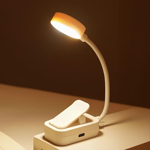HECDSTLY Clip on Desk Lamp, Battery Powered Reading Light with Strong Clamp - 5 Colors 5 Brightness, USB Rechargeable Portable Cordless Book Lamp for Bed Headboard Table Bedside Home Office (Black)