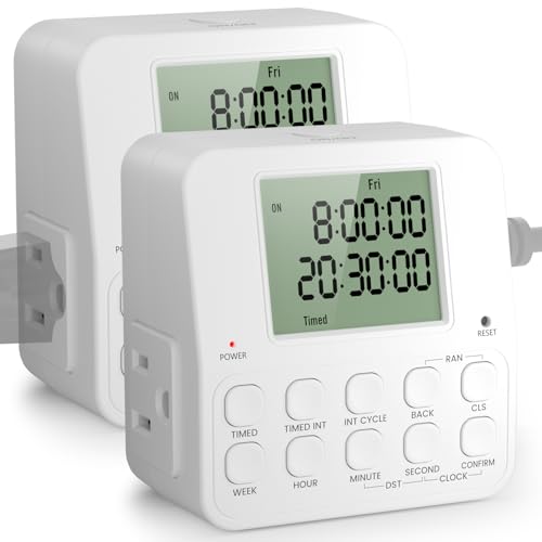 Fosmon 7 Day Programmable Digital Timer for Electrical Outlets, Indoor Plug-in Light Timer Switch, Grow Light Timer 15A/1875W, Electric Wall Timer for Appliance, Lamp, Aquarium, Reptile Lights
