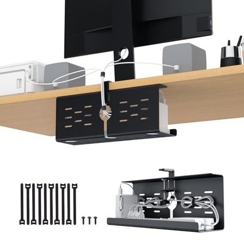 Cable Management Organizer Box, Large Storage Wires Concealer Holder for Desk, Home, Kitchen, TV, Computer, USB Hub, Cable Management Box to Hold and Hide Power Strip/Power Cord (Small, Black)