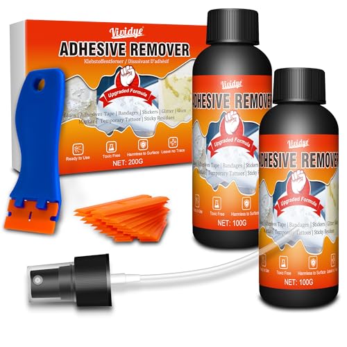Adhesive Remover Spray, Sticker Remover Cleaning Multi-Surface Residue, GlueRemover for Tap, Decals, Glue, Chewing Gum, from Car, Windows, Glass, Plastic, LabelRemover with Scraper and Towel