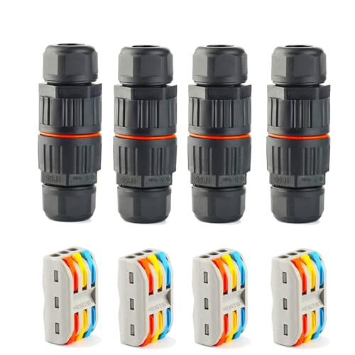 4 Pack Junction Box Outdoor Waterproof IP68, 3 Pole Wire Connector, External Sleeve Coupler Cable Range 0.16-0.39 Inch (4-10 mm)