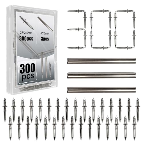 300pcs Double Head Skirting Thread Seamless Nail Invisible Screws with 4 Pecific Sleeve Tools Double Headed Nails for Seamless Skirting Line Thread Wood Baseboard Mouldings Home Renovation
