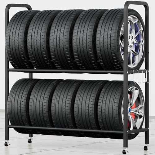 Aunulahca Power Tool Organizer, 8 Drill Holder Wall Mount, 4 Layers Tool Storage Rack Shelf with Hooks, Heavy Duty Metal Cordless Power tool Shelf for Garage Organization