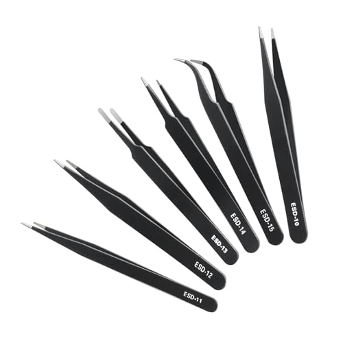 Torontoo 6pcs Non-magnetic Steel Fine Curved Tip Tweezers Forceps Anti-static ESD 10 11 12 13 14 15 SMD Chip