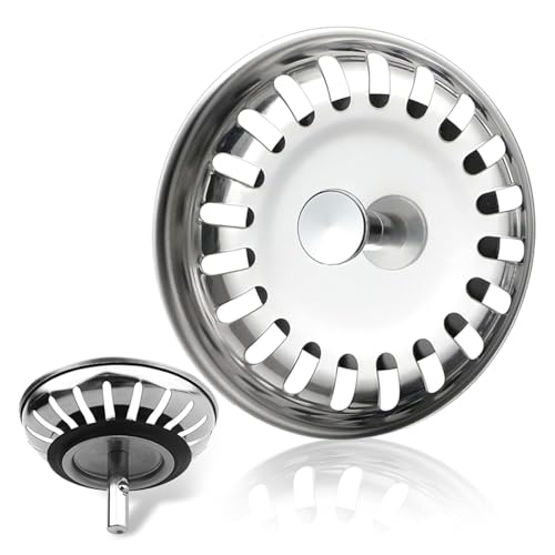 Kitchen Sink Drain 3-1/2 Inch Sink Drain Assembly Kit, Removable Deep Sink Strainer Basket with Sink Stopper/Sealing Lid for Home, Kitchen, Stainless Steel