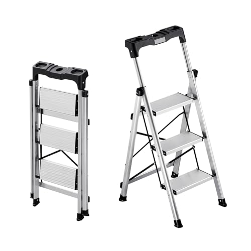 VEVOR Step Ladder 2-Step 330lbs Capacity, Ergonomic Folding Steel Step Stool with Wide Anti-Slip Pedal, Sturdy Step Stool for Adults Toddlers, Multi-Use for Household, Kitchen, Office, RVs