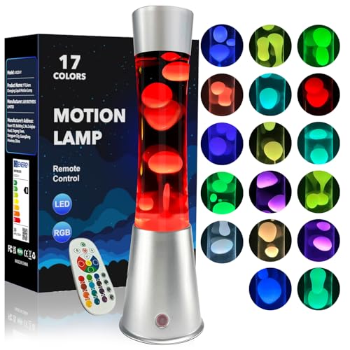 15.5in Liquid Motion Lamp, Remote Control LED Mood Light, 17 Colors Changing Night Light, LED Liquid Motion Lamp for Living Room, Bedroom or Game Room (Black Base, White Wax and Water)