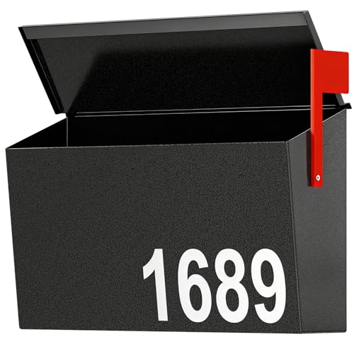 Mailbox Duraline Extra Large Mailboxes for Outside with Stainless Steel Hinges - Mailbox Extra Large Capacity, Ultra-Durable Mailbox, Vandalproof Thick Puck Board Plastic (Black Modern)
