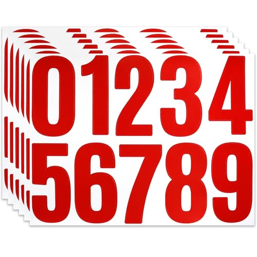 BINLINHONGO 60 4 Inches Large Number Stickers, Self-Adhesive Vinyl 0-9 Sticker Decals for Mailbox, Doors, Trucks and Outdoors, 6 Sheets Red