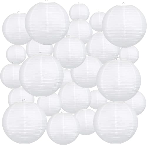 Tosnail 15 Pack Paper Lanterns, 12", 10", 8", 6", 4" White Paper Lamp for Wedding, Party Decorations, Arts and Crafts