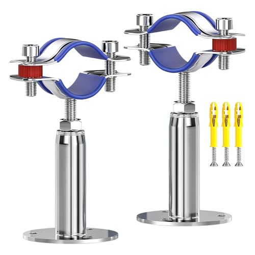 Flunyina 25mm 3/4 in Stainless Steel Wall Mount Pipe Supports - Adjustable Bracket Clamp Straps for Ceiling Mount With Screws, 4 Packs