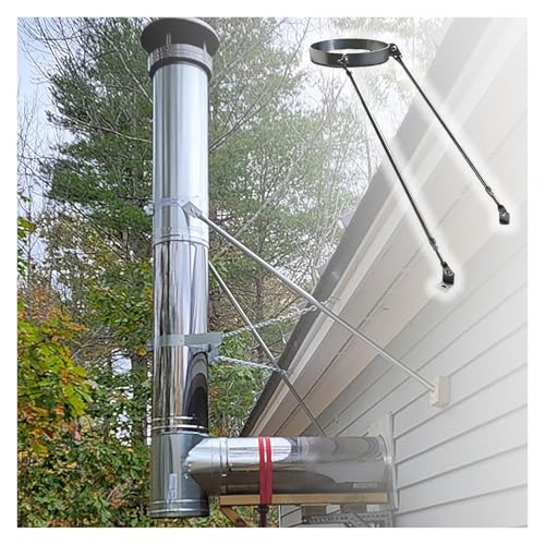 Stainless Steel Chimney Pipe Wall Support Bracket 6 Inch Flue Liner Mounting Clamp Adjustable Distance Hanging Holder for Stove Pipe Installation Black/ Metal 11 X 6 Inches