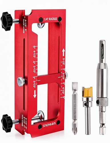 Aiwons Cabinet Hardware Handle Jig,True Position Cabinet Installation Tools with Drill Guide,Cabinet template for Drawer,Pull,Handles,Woodworking punch locator for Door knob Jig of Aluminum Alloy Red