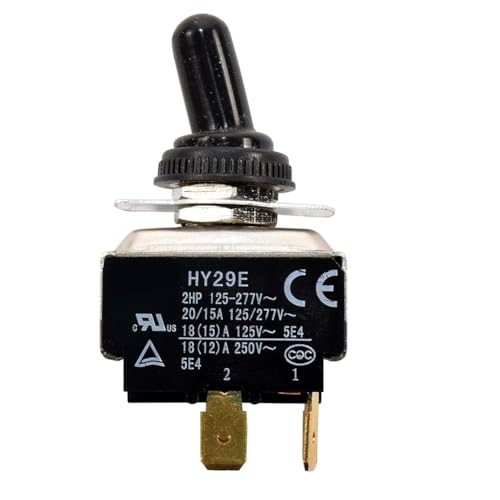 Toggle Switch, Maintained Contact and Multiple Pole, On Off Circut Function, DPST, Brass/Nickel Actuator, 20/10 amps at 125/250 VAC, 0.250 Quikconnect Connection