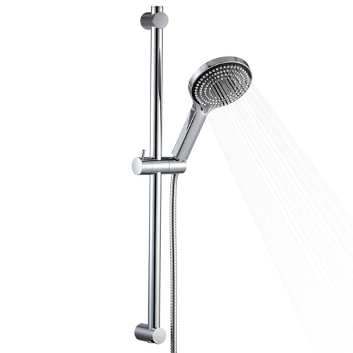 KES Handheld Shower Head with Adjustable Shower Slide Bar 5 Function Extra Long Hose Polished Finish, F204-PS+KP501B-CH