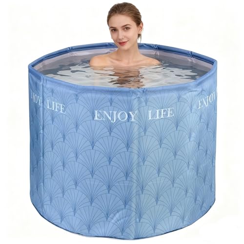 HLCZLUZ Foldable Portable Bathtub, Hot Ice Bath Tub, Shower Tub Non-Inflatable, Collapsible Bathtub SPA Soaking Tubs for Travel, Camping, Gyms, Home (Blue)