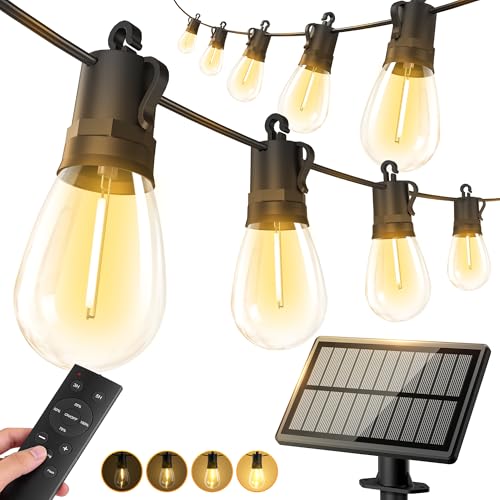 Outdoor String Lights with Remote Control - 100FT ST38 LED Patio String Lights E12 Shatterproof Bulbs Warm White Waterproof Bistro Lights for Backyard Pergola Deck Garden
