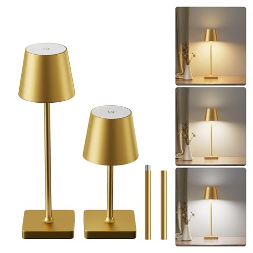 Rechargeable Cordless Table Lamp: 3000k Stepless Dimming, 1 Pack Brass 4000mAh Battery Operated Wireless Touch Lamp for Dining Table, Counter, Living Room, Bedroom
