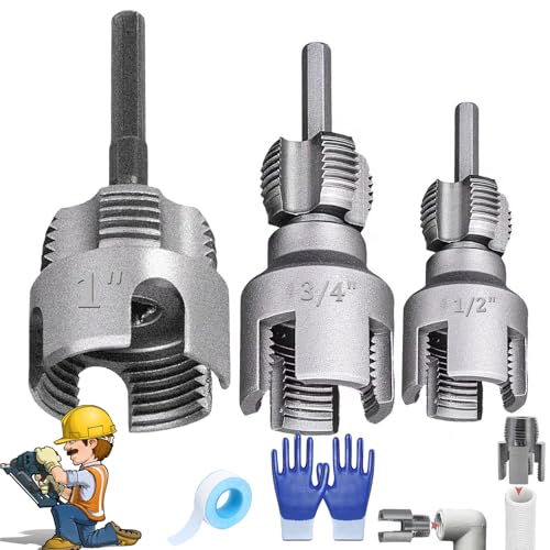 2025 New Pipe Thread Cutting Tool,Integrated Internal & External Pipe Threading Tool, PVC Thread Maker Tool,1/2" (DN15) 3/4" (DN20) Pipe Sizes Rethreading Tool for Electric Drill Cutting Threading1