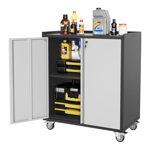SISESOL Metal Wall Storage Cabinet with Up-Flip Door, Mounted Storage Cabinet with Lock 1 Shelf Garage Storage, Floating Tool Cabinet for Garage/Basement (Style -1, 35H x 80W x 33D Centimetres)