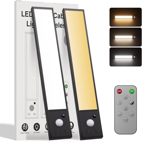Under Cabinet Lighting, LED Motion Sensor Light Indoor, 2200mAh USB Rechargeable Closet Lights Battery Operated, Stick On Magnetic Wireless Dimmable Under Counter Lights for Kitchen, Stairs (2 Pack)