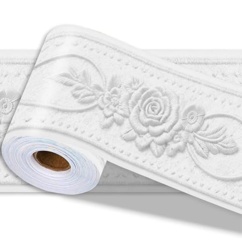 AnRui 16.4 Ft x 3.9 in Peel and Stick Baseboard Trim, Self Adhesive Mirror Frame, PVC Caulk and Trim Strips for Kitchen Bathroom Decor Walls(White)