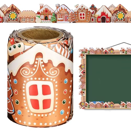 Christmas Bulletin Board Border, Gingerbread Man Santa Claus Christmas Tree Trim Border Chris-tmas Decoration, Cut Trim Borders Roll for Winter Chris-tmas Chalkboard Wall Decor