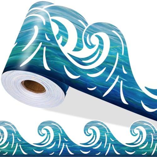 50 Ft Boho Bulletin Board Borders Scalloped Classroom Border Roll Stripe Polka Dot Border Trims Boho Colorful Bulletin Board Decorations for School Classroom Office Wall Chalkboard Decor