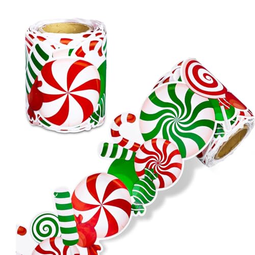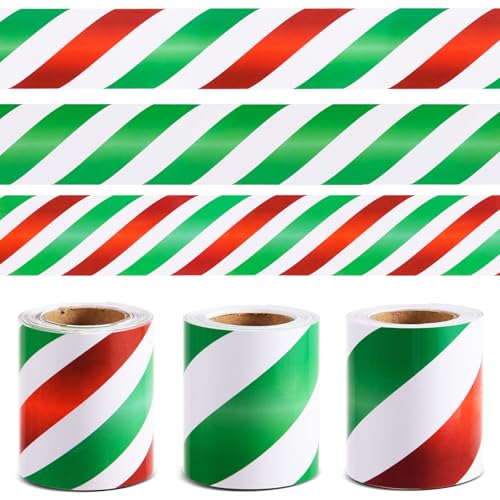 Whaline 32.8Ft Christmas Candy Peppermint Bulletin Board Border Xmas Red Green Candy Cane Rolled Self Adhesive Border Trim Stickers for Xmas Holiday Party Classroom Chalkboard Wall Decor