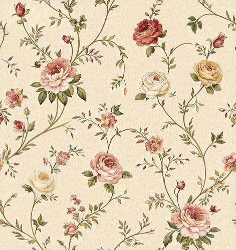 Kalafona Peel and Stick Wallpaper, Vintage Floral Wallpaper, Self-Adhesive Wallpaper For Kitchen Bedroom Bathroom Wall Cabinets Drawer Liners, Vinyl Waterproof Contact Paper,17.3"x393",CAVF06-10