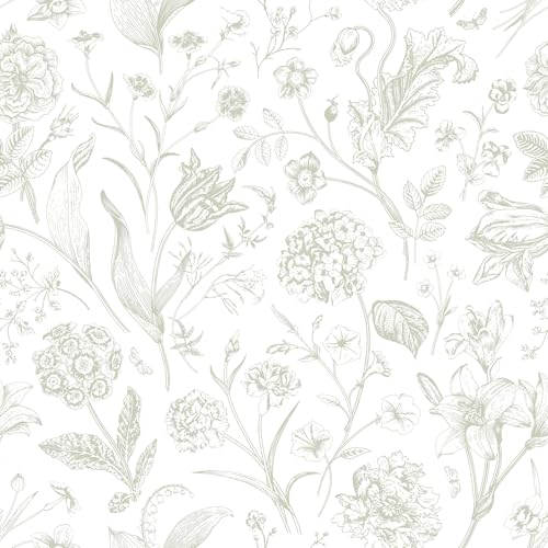 Kalafona Vintage Floral Peel and Stick Wallpaper 鈥 Botanical Garden Removable Wall Paper, Renter Friendly Self Adhesive Wildflower Wallpaper for Bedroom, Bathroom, Kitchen & Cabinets Decor 17.3"x78.7"