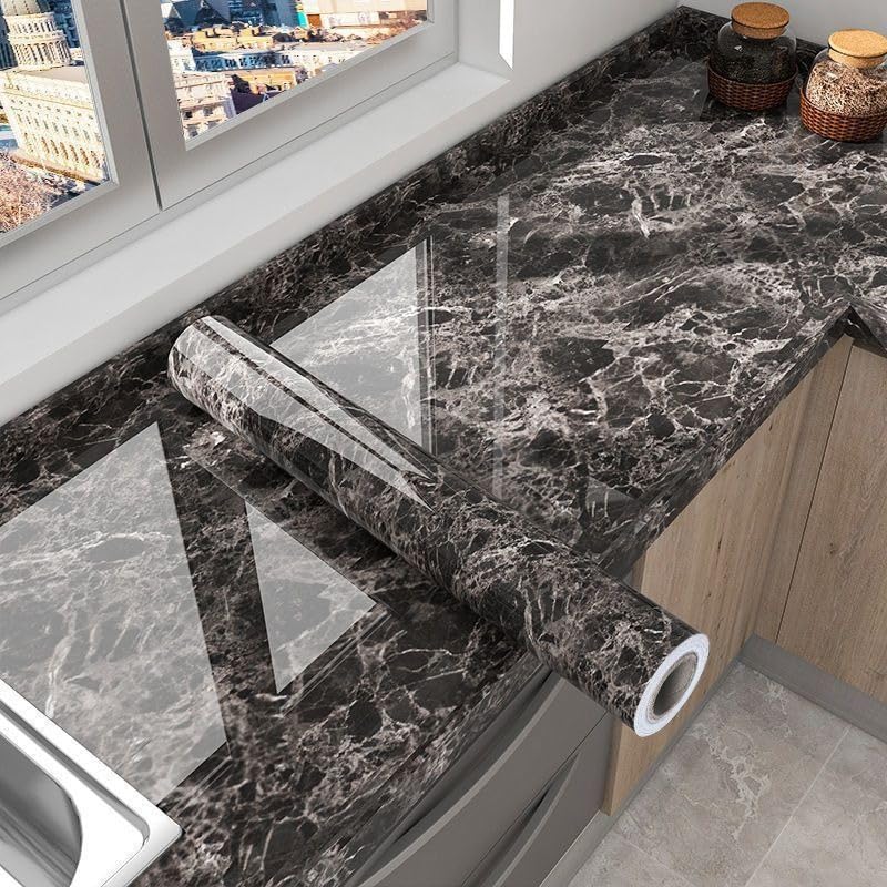 Arthome Peel and Stick Contact Paper Textured Wallpaper,Self-Adhesive and Removable Textured Wall Paper for Bedroom,Cabinet Countertop,Stick On Wall Covering,Black Silk,60W x 508L cm