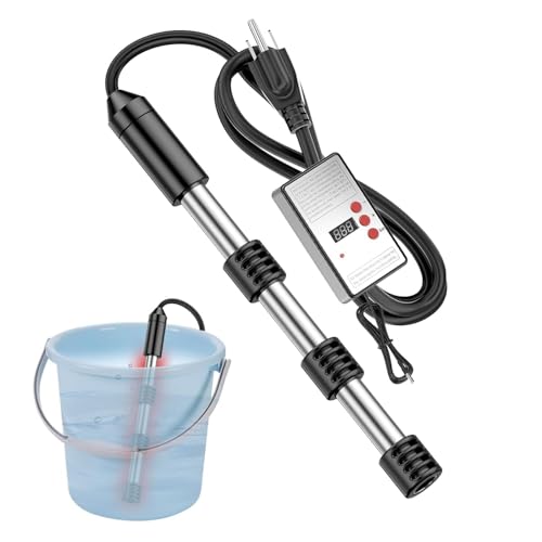 Ganggend 2000W Immersion Water Heater, Electric Portable Water Heater with Constant Temperature Mode, Built-in Digital LCD Thermometer, Portable Stainless Steel Heater for Bucket, Bathtub, Pool.