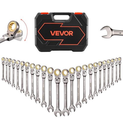 VEVOR Flex-Head Ratcheting Wrench Set, 12-Piece Metric 8 mm to 19 mm, 72 Teeth, Cr-V Steel Ratchet Flexible Combination Wrench Set with Roll Up Pouch, for General Household and Automotive Repairs