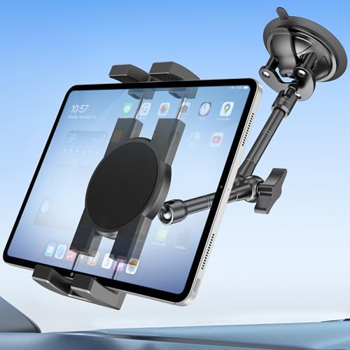 Lucrave Tablet Wall Mount Holder, Aluminium Extendable iPad Wall Holder, with 360掳Rotating Base Adjustable and Foldable for iPad Pro Air Mini, Galaxy Tab, All 4.7-13" Phones and Tablets (Black)
