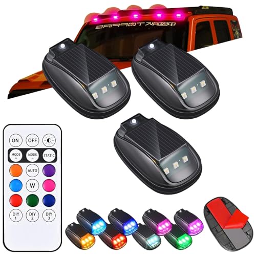 2/4/5 Pcs Solar Cab Lights for Truck, 2026 New Solar Car Roof RGB Strobe Light, Wireless No Drill Roof LED Marker Light, 8 Color Waterproof Off Road Lights with Vibration Sensor for Trucks SUV (5pcs)