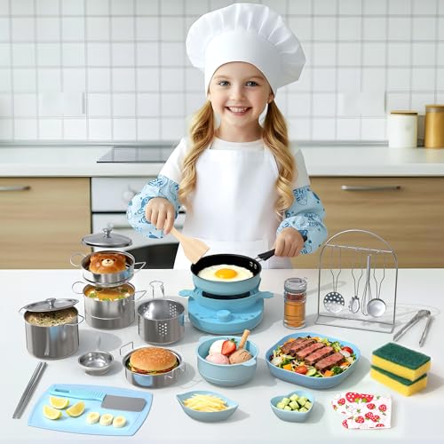 Melissa & Doug Stainless Steel Pots & Pans, 8 Piece Play Kitchen Set, Premium Play Kitchen Accessories & Cooking Utensils, Preschool Toys for Kids 3+