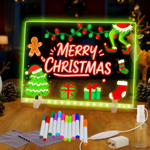 LED Note Board with 7 Colors, 13.8"x10" LED Drawing Board for Kids, Lumiboard Light Up Dry Erase Board with 12 Markers, Adapter, Soft Cloth, Hanging Chain, Christmas & Birthday Gifts for Girls Boysfts